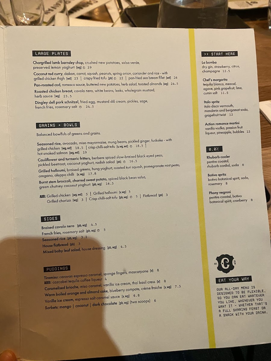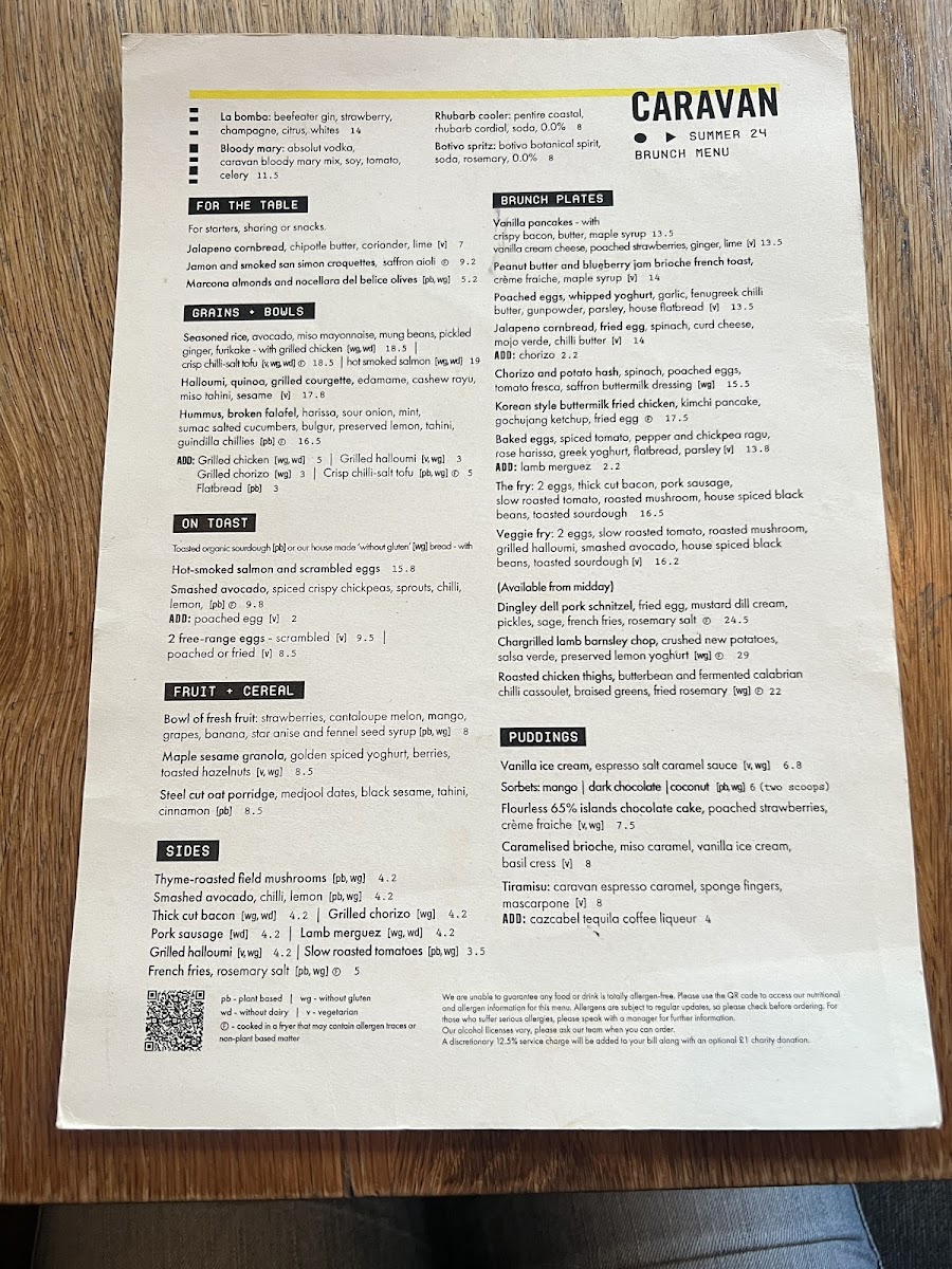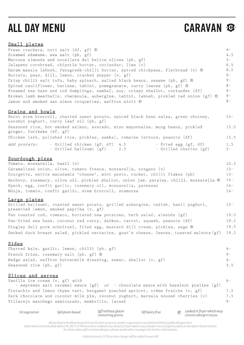 Caravan Fitzrovia Restaurant Menu
